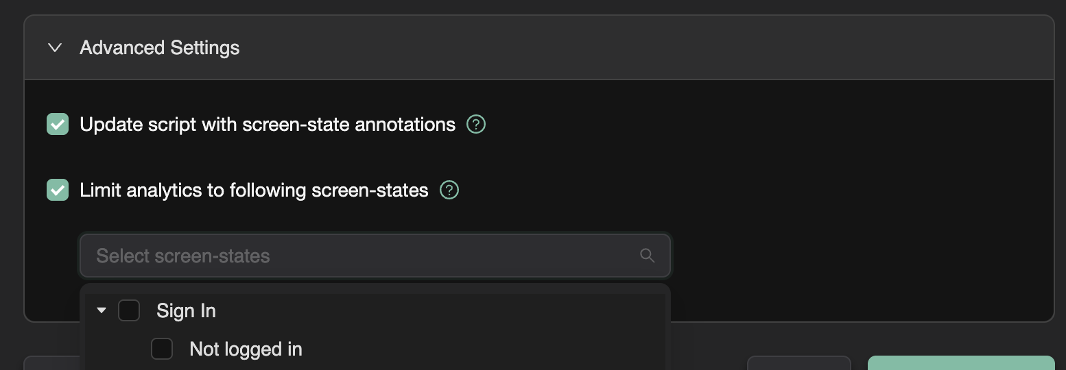 - Analytics will be skipped for screen-states that don't match your selection